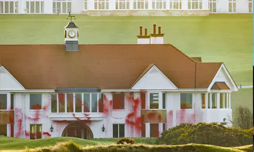 എഡിന്ബര്ഗ്: യുഎസ് പ്രസിഡന്റ് ഡോണള്ഡ് ട്രംപിന്റെ ഉടമസ്ഥതയിലുള്ള സ്കോട്ട്ലാന്ഡിലെ ഗോള്ഫ് റിസോര്ട്ടില് ഫലസ്തീന് അനുകൂലികളുടെ പ്രതിഷേധം. റിസോര്ട്ടിന്റെ വിവിധഭാഗങ്ങളില് ഫലസ്തീന് ആക്ഷന് പ്രവര്ത്തകര് ചുവന്ന പെയിന്റ് അടിച്ചു.