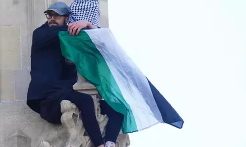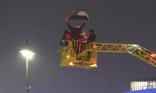 അതേസമയം, ലണ്ടനിലെ പ്രശസ്തമായ ബിഗ്ബെന് ടവറില് ഫലസ്തീന് പതാകയുമായി യുവാവ് കയറി.