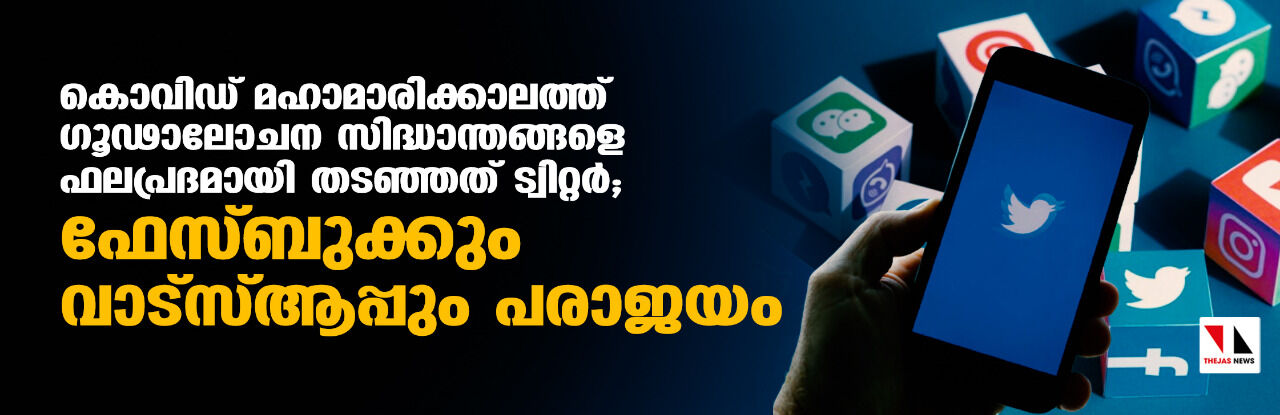 കൊവിഡ് മഹാമാരിക്കാലത്ത് ഗൂഢാലോചനാ സിദ്ധാന്തങ്ങളെ ഫലപ്രദമായി തടഞ്ഞത് ട്വിറ്റര്; ഫേസ്ബുക്കും വാട്സ്ആപ്പും പരാജയം