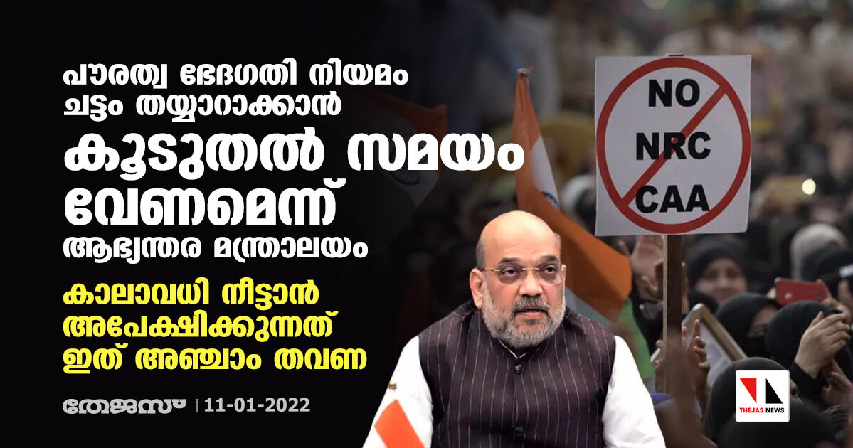 പൗരത്വ ഭേദഗതി നിയമത്തിന് ചട്ടമായില്ല; സമയം നീട്ടി നല്കണമെന്ന് ആവശ്യപ്പെട്ട് ആഭ്യന്തര മന്ത്രാലയം പാര്ലമെന്റ് സമതിയില്