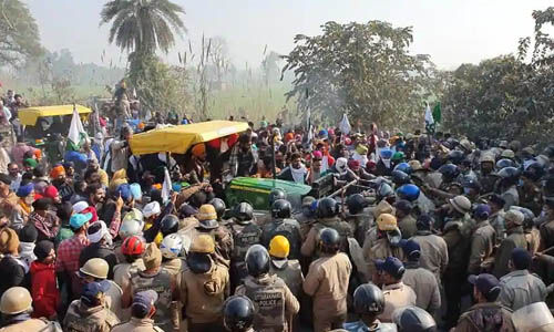 കാശിപൂര്, ബസ്പൂര്, നാനക്മാത്ത തുടങ്ങിയ പ്രദേശങ്ങളില് വച്ച് പോലിസും കര്ഷകരും ഏറ്റുമുട്ടി. സംഭവത്തില് ചില പോലിസുകാര്ക്ക് പരിക്കേറ്റിട്ടുണ്ട്. നനക്മാത്ത പോലിസ് സ്റ്റേഷനിലെ സ്റ്റേഷന് ഓഫിസര്ക്ക് പരിക്കേറ്റിട്ടുണ്ട്.