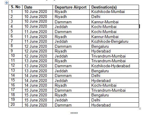 പത്താം തിയ്യതി റിയാദില് നിന്ന് കോഴിക്കോട്ടെയ്ക്കാണ് ഈ സീരീസിലെ ആദ്യ വിമാനം.