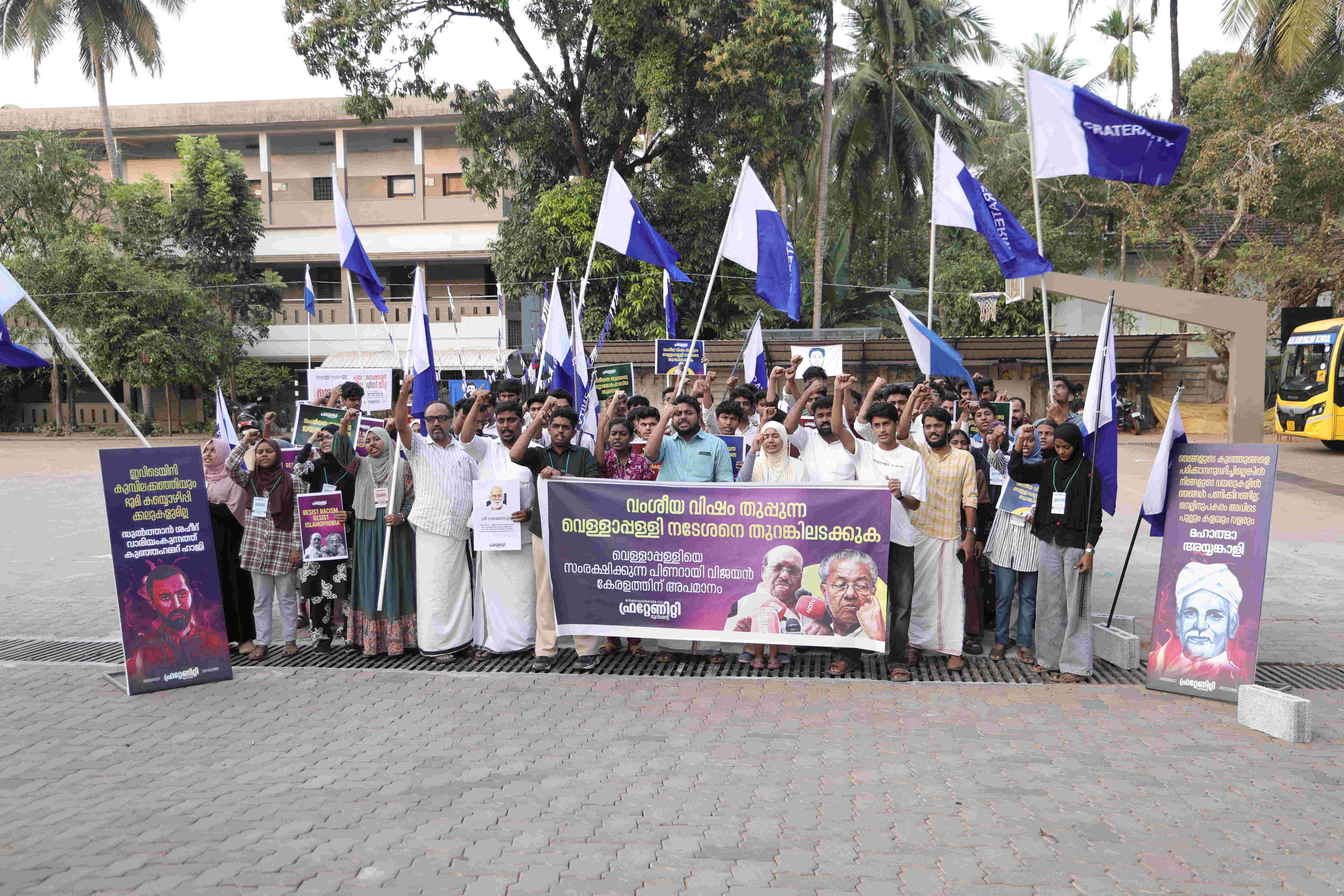 കൊണ്ടോട്ടി: നിരന്തരം മുസ് ലിം വിരുദ്ധ പരാമര്ശം നടത്തി വര്ഗീയ വിഷം തുപ്പുന്ന വെള്ളാപ്പള്ളി നടേശനെ ഉടന് അറസ്റ്റ് ചെയ്യണമെന്ന് ഫ്രറ്റേണിറ്റി മൂവ്മെന്റ് സംസ്ഥാന പ്രസിഡന്റ് നഈം ഗഫൂര് ആവശ്യപ്പെട്ടു. വെള്ളാപ്പള്ളിയുടെ വര്ഗീയ പരാമര്ശങ്ങള്ക്കെതിരേ ഫ്രറ്റേണിറ്റിയടക്കം പരാതി നല്കിയിട്ടും ഒരു നടപടിയും എടുത്തിട്ടില്ല. നാല് വോട്ടിനു വേണ്ടി സിപിഎം വര്ഗീയത പറയുന്ന വെള്ളാപ്പള്ളിയെ തലയിലേറ്റി നടക്കുകയാണ്. നവോത്ഥാന മുന്നണി ചെയര്മാന് സ്ഥാനത്തു നിന്ന് വെള്ളാപ്പള്ളിയെ നീക്കണം. മാധ്യമപ്രവര്ത്തകന്റെ മതം നോക്കി തീവ്രവാദിയെന്ന് വിളിച്ച പരാമര്ശം അപലനീയമാണെന്നും അദ്ദേഹം കൂട്ടിച്ചേര്ത്തു. കൊണ്ടോട്ടി മര്ക്കസ് സ്കൂളിലെ നിഹാല് ബുഖാരി നഗരില് നടക്കുന്ന ഫ്രറ്റേണിറ്റി ഹയര് സെക്കന്ഡറി ലീഡേഴ്സ് മീറ്റ് 'ഉയരെ' ഉദ്ഘാടനം ചെയ്യുകയായിരുന്നു അദ്ദേഹം.