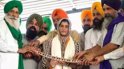 വിനേഷ് ഫോഗട്ട് കര്ഷകസമര വേദിയില്; മറ്റാരും നമുക്കായി വരില്ലെന്ന് താരം