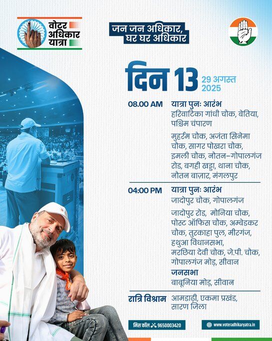 വോട്ടര് അധികാര് യാത്ര 13ാം ദിവസത്തിലേക്ക് (വിഡിയോ)
