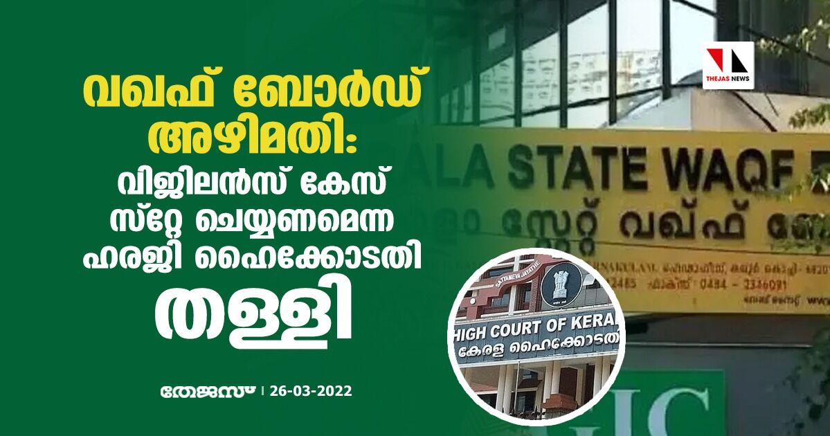 വഖ്ഫ് ബോര്ഡ് അഴിമതി: വിജിലന്സ് കേസ് സ്റ്റേ ചെയ്യണമെന്ന ഹരജി ഹൈക്കോടതി തള്ളി