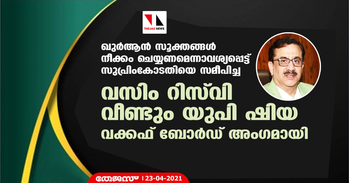 ഖുര്ആന് സൂക്തങ്ങള് നീക്കം ചെയ്യണമെന്നാവശ്യപ്പെട്ട് സുപ്രിംകോടതിയെ സമീപിച്ച വസിം റിസ്വി വീണ്ടും യുപി ഷിയ വഖഫ് ബോര്ഡ് അംഗമായി