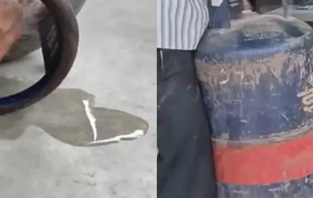 കഴിഞ്ഞ ഞായറാഴ്ച 1,880 രൂപ നല്കി സിലിണ്ടര് വാങ്ങിയത്. സ്ഥാപനത്തില് ചപ്പാത്തി തയ്യാറാക്കുന്നതിനിടെ ഗ്യാസ് അടുപ്പിലെ തീ അപ്രതീക്ഷിതമായി കെട്ടു പോയി. തുടര്ന്ന് നടത്തിയ പരിശോധനയിലാണ് സിലിണ്ടറില് ഗ്യാസിന് പകരം വെള്ളമുണ്ടെന്ന് കണ്ടെത്തിയത്. വാല്വ് തുറന്ന് പരിശോധിച്ചപ്പോള് സിലിണ്ടറില് നിന്ന് വെള്ളം പുറത്തേക്ക് വരികയായിരുന്നു. സാധാരണയായി 38.1 കിലോ തൂക്കമുള്ള വാണിജ്യ സിലിണ്ടറില് 19.1 കിലോ പാചകവാതകമാണ് നിറയ്ക്കേണ്ടത്. എന്നാല് ഏകദേശം 9 കിലോ ഗ്യാസ് ഉപയോഗിച്ചശേഷം ബാക്കി വന്ന ഭാഗം പച്ചവെള്ളമായിരുന്നുവെന്നാണ് സ്ഥാപന ഉടമയുടെ ആരോപണം.