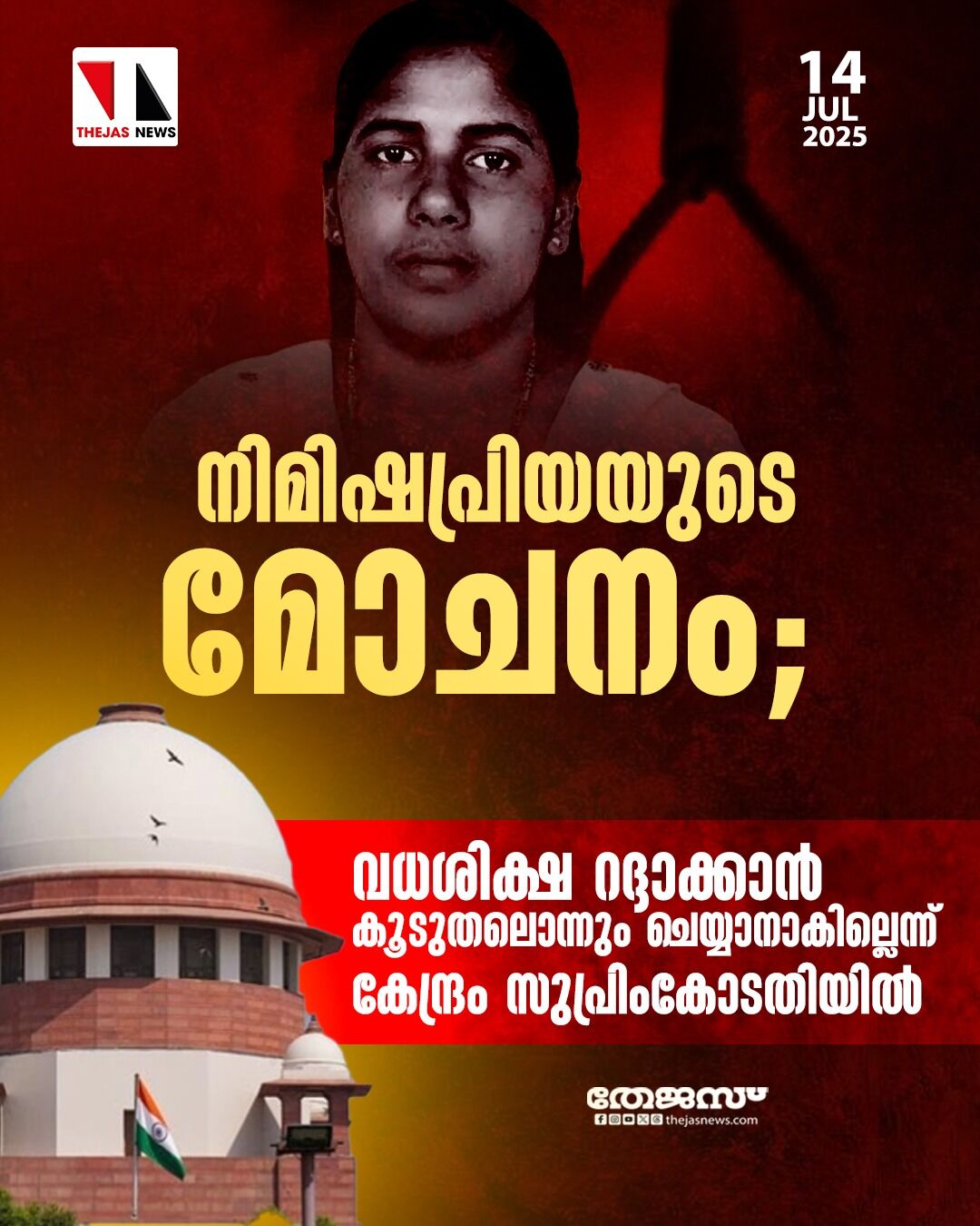 നിമിഷപ്രിയയുടെ മോചനം; വധശിക്ഷ റദ്ദാക്കാൻ കൂടുതലൊന്നും ചെയ്യാൻ കഴിയില്ലെന്ന് കേന്ദ്രം സുപ്രിംകോടതിയിൽ
