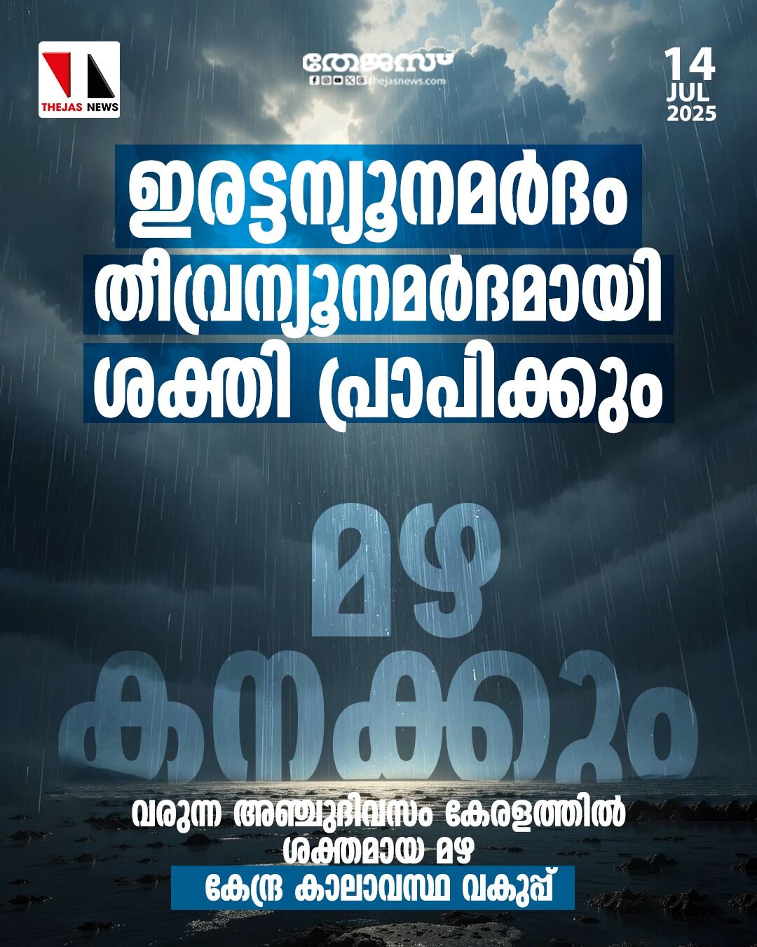 ഇരട്ടന്യൂനമര്ദം തീവ്രന്യൂനമര്ദമായി ശക്തി പ്രാപിക്കും; മഴ കനക്കും