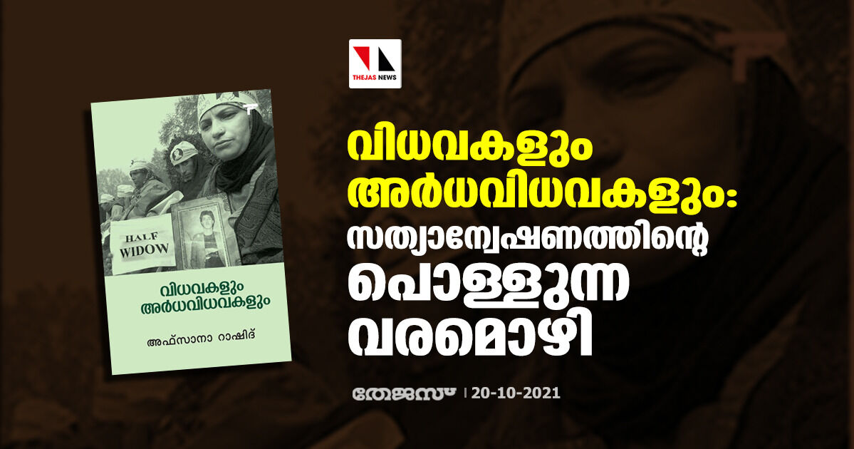 നിനച്ചിരിക്കാത്ത ദുര്ദിനത്തില് തങ്ങളില് നിന്നു പിഴുതെടുക്കപ്പെട്ട തങ്ങളുടെ പ്രിയപ്പെട്ടവരെക്കുറിച്ചോര്ത്ത് വിതുമ്പുന്ന ഒരു ജനതയുടെ ജീവിത കഥയിലേക്കുള്ള സഞ്ചാരമാണ് അഫ്സാനാ റഷീദിന്റെ 'വിധവകളും അര്ധവിധവകളും'