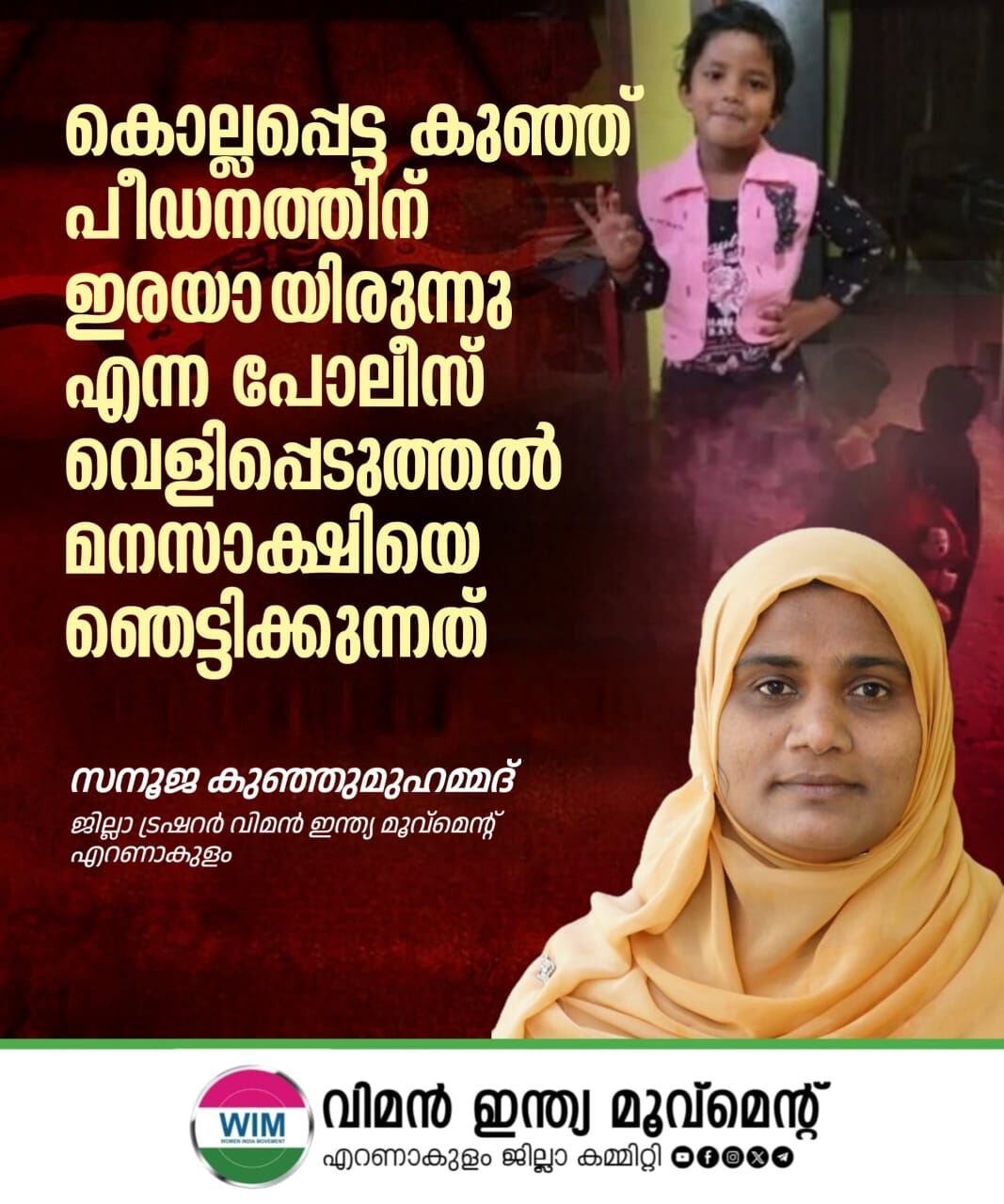 ആലുവയിലെ കുഞ്ഞ് പീഡനത്തിനിരയായത് മനസ്സാക്ഷിയെ ഞെട്ടിക്കുന്നത്: സനൂജ കുഞ്ഞുമുഹമ്മദ്