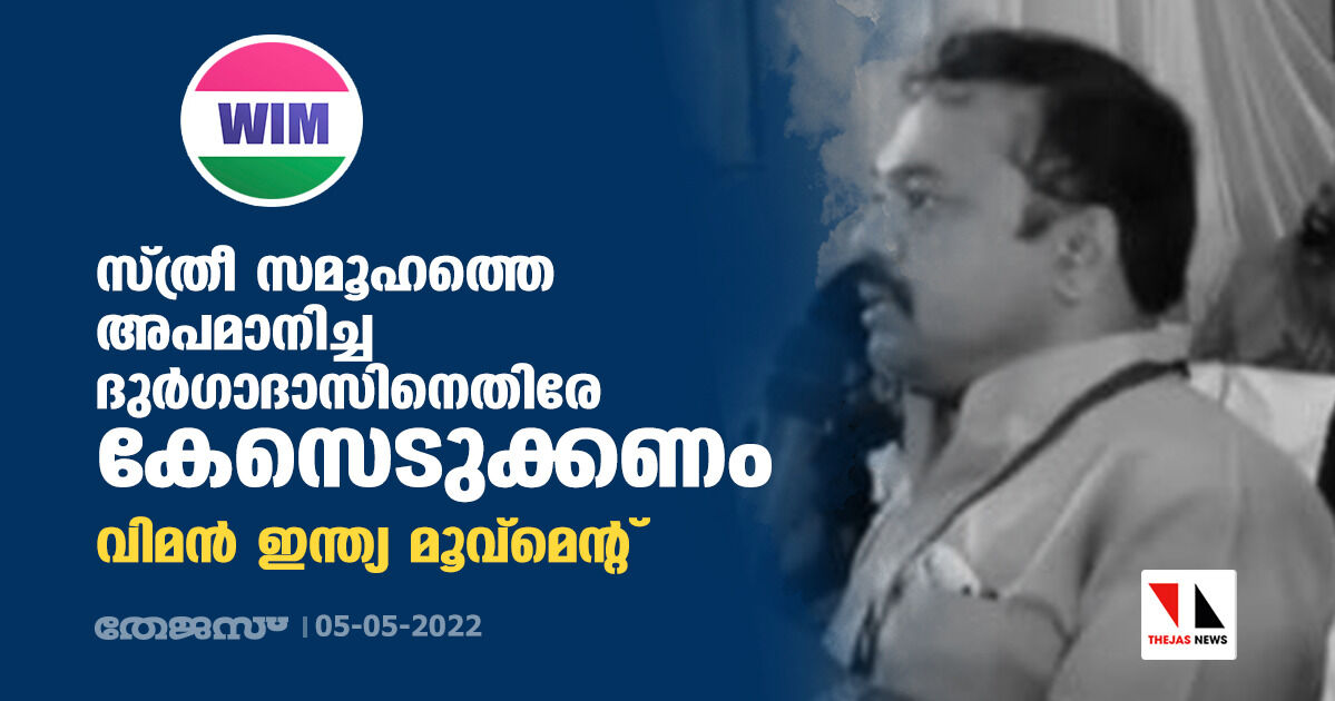 സ്ത്രീ സമൂഹത്തെ അപമാനിച്ച ദുര്ഗാദാസിനെതിരേ കേസെടുക്കണം: വിമന് ഇന്ത്യ മൂവ്മെന്റ്