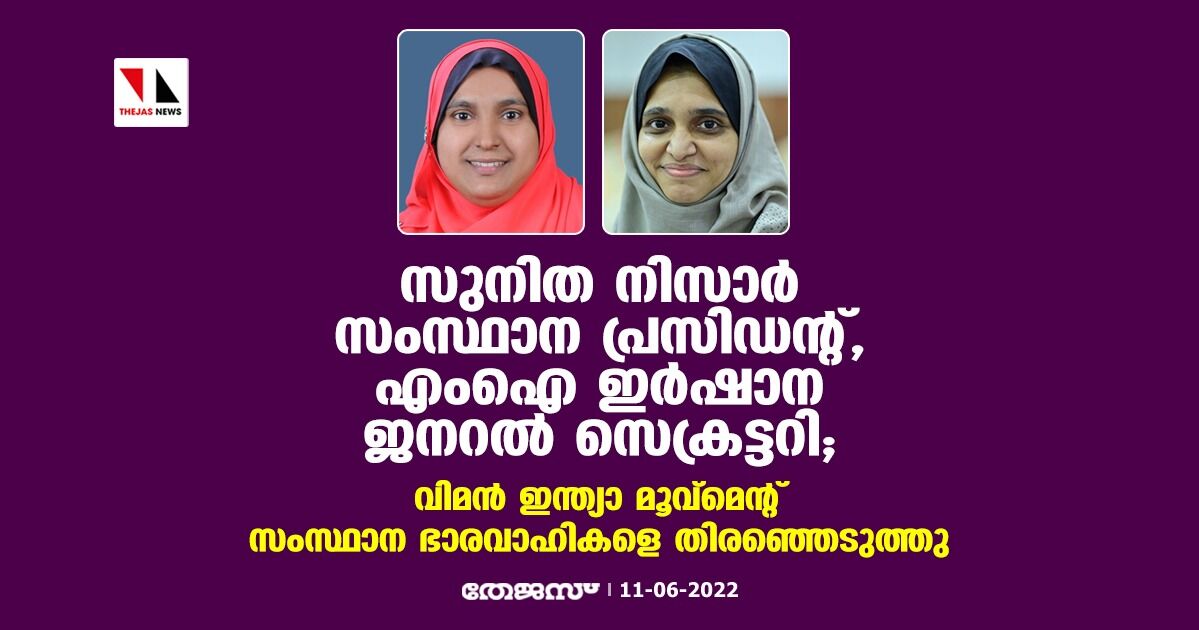 സുനിത നിസാര് പ്രസിഡന്റ്, എംഐ ഇര്ഷാന ജനറല് സെക്രട്ടറി; വിമന് ഇന്ത്യാ മൂവ്മെന്റ് സംസ്ഥാന ഭാരവാഹികളെ തിരഞ്ഞെടുത്തു