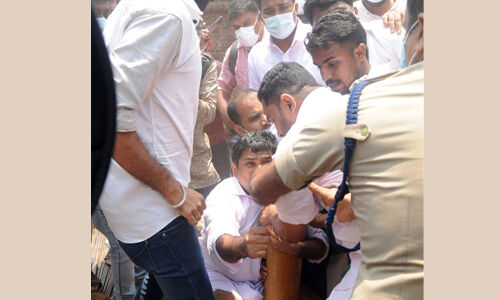 സമരത്തിന് നേതൃത്വം കൊടുത്ത ജില്ലാ പ്രസിഡന്റ് സുദീപ് ജെയിംസ്, കെ കമല്ജിത്, സന്ദീപ് പണപ്പുഴ, ശ്രീജേഷ് കൊയ്ലേരിയന്, പ്രനില് മാതുകോത്, പി ഇമ്രാന്, സുധീഷ് കുന്നത്ത്, അന്സില് വാഴ വളപ്പില് തുടങ്ങി നിരവധി പ്രവര്ത്തകരെ പോലിസ് അറസ്റ്റ് ചെയ്തു നീക്കി.
