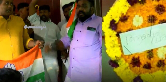 ആരോഗ്യമന്ത്രിയുടെ വീട്ടില് റീത്തുവെച്ച് പ്രതിഷേധിച്ച് യൂത്ത് കോണ്ഗ്രസ്