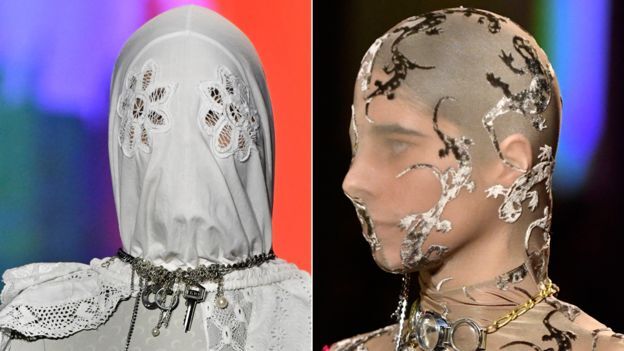 വായും മൂക്കും മൂടുന്ന മാസ്കുകളോടൊപ്പം കണ്ണൊഴികെ എല്ലാ ഭാഗങ്ങളും മൂടുന്ന വസ്ത്രങ്ങളും റാംപിലെത്തി.