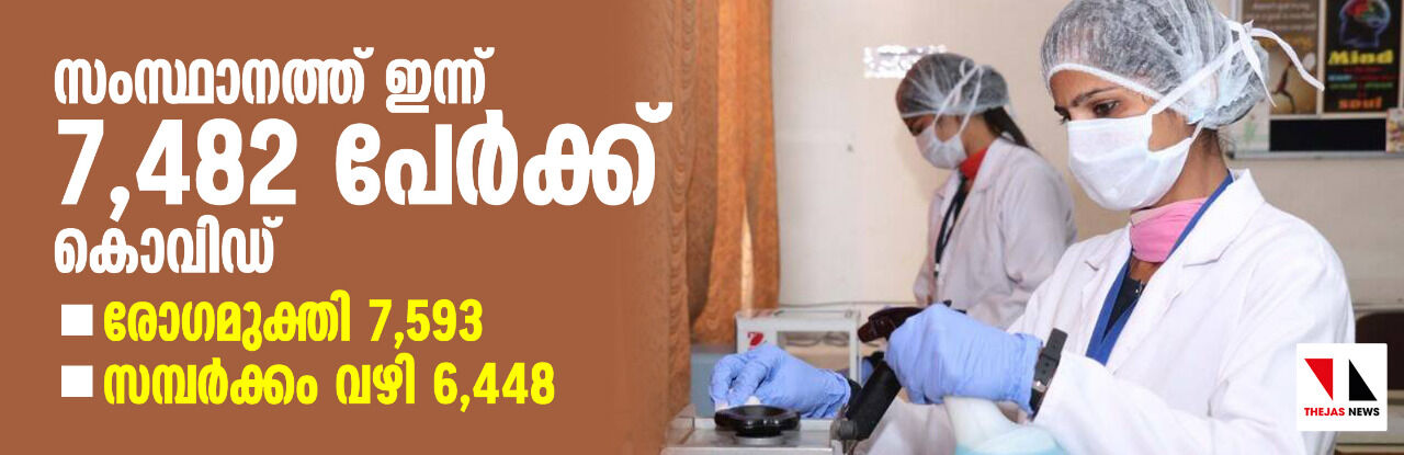 സംസ്ഥാനത്ത് ഇന്ന് 7,482 കൊവിഡ് ബാധിതര്; 6,448 പേര്ക്ക് സമ്പര്ക്കത്തിലൂടെ വൈറസ് ബാധ, 7,593 പേര് രോഗമുക്തരായി