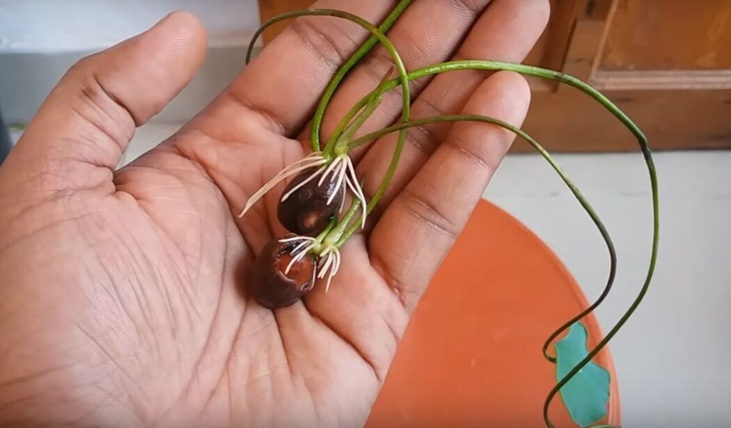 ഇങ്ങിനെ തയ്യാറാക്കിയ വിത്തുകള് ചെറിയ പാത്രത്തില് വെള്ളം നിറച്ച് അതിലിട്ടുവെക്കണം. നാലാം ദിവസം വിത്ത് തളിരിട്ട് വേരുകള് പുറത്തേക്കുവരും.