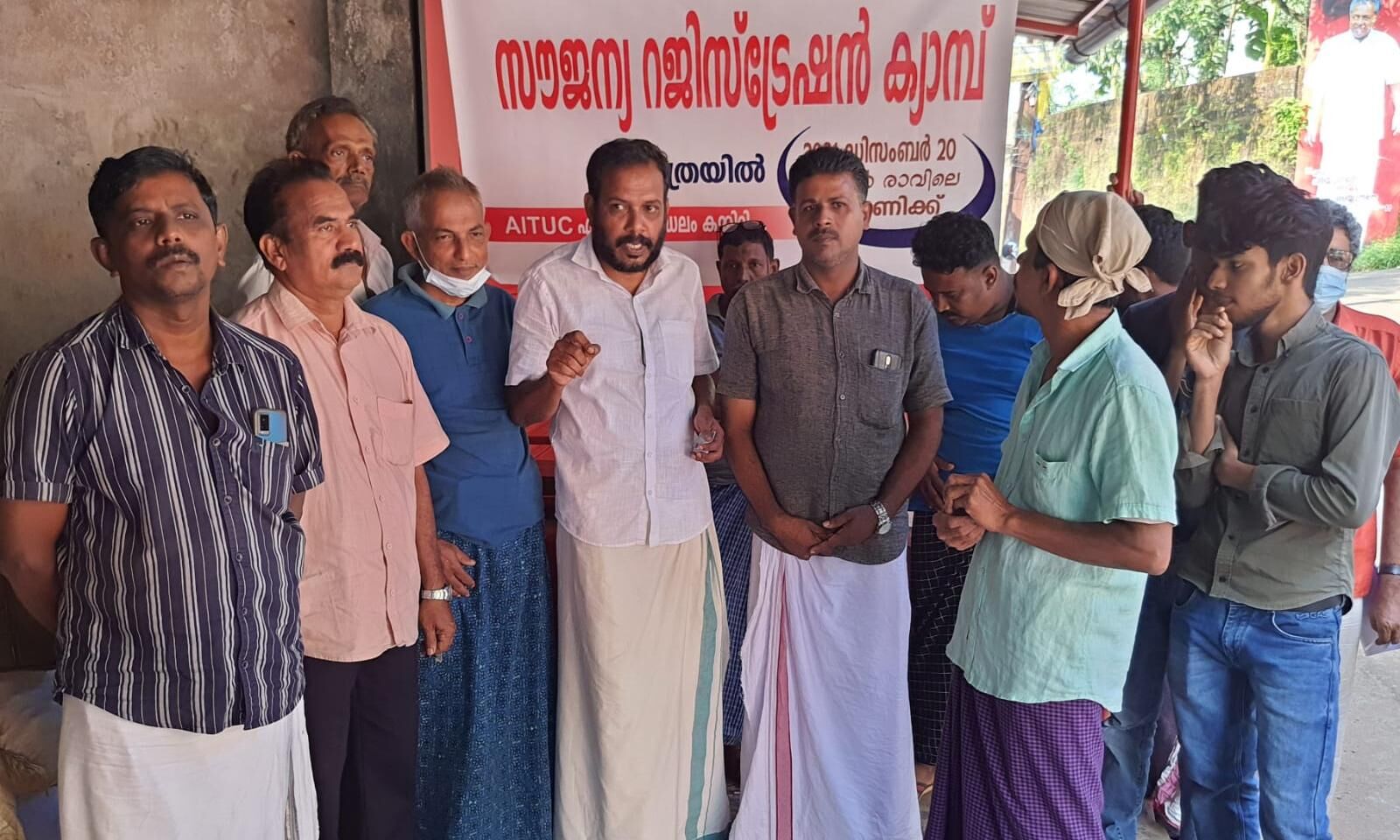 എഐടിയുസി മണ്ഡലം പ്രസിഡന്റ് സിദ്ധിഖ് മൈത്ര അധ്യക്ഷത വഹിച്ച ചടങ്ങിൽ കെ വി ജയപ്രകാശ്, പി കെ അബ്ദുറഹിമാൻ, പ്രതീഷ് തച്ചണ്ണൻ എന്നിവർ ആശംസകൾ അർപ്പിച്ചു സംസാരിച്ചു. അലി പി, വി കെ അബ്ദുല്ല, ഹഫ്സത്ത്, ലീന തുടങ്ങിയവർ നേതൃത്വം നൽകി കാംപിൽ ഇരുന്നൂറോളം തൊഴിലാളികൾ രജിസ്റ്റർ ചെയ്തു.