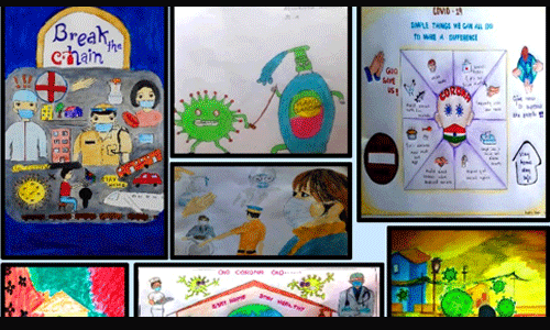 കൊറോണ വൈറസ്, ആരോഗ്യ പ്രവര്ത്തകര്, നിയമപാലകര്, സന്നദ്ധസംഘടനകള്, വിജനമായ നഗരപാതകള്, അടഞ്ഞുകിടക്കുന്ന കടകള്, സൈ്വര്യ വിഹാരം നടത്തുന്ന ജീവികള് തുടങ്ങി വിദ്യാര്ത്ഥികളുടെ ഭാവനയില് വിരിഞ്ഞ നിരവധി ചിത്രങ്ങളുണ്ട്.