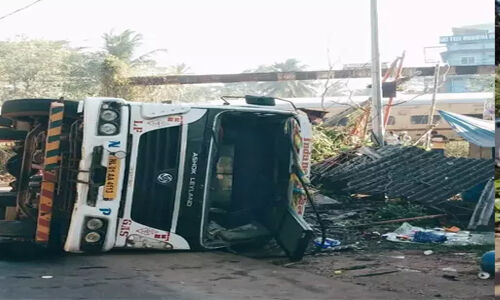 തലശ്ശേരിയില് ഗ്യാസ് ടാങ്കര് ലോറി മറിഞ്ഞു;ടാങ്കറില് ചോര്ച്ചയുണ്ടാകാതിരുന്നതിനാല് ഒഴിവായത് വന് ദുരന്തം