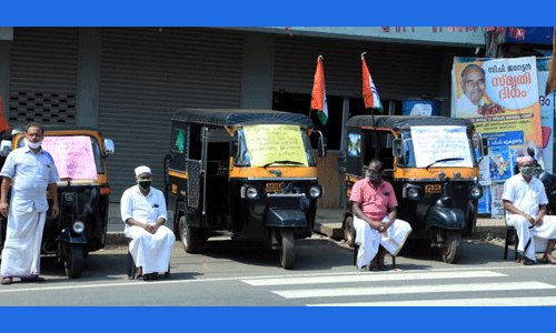 ഓട്ടോറിക്ഷകള് നിരത്തില് ഇറങ്ങാന് അനുവദിക്കാത്ത സര്ക്കാര് നയത്തിനെതിരെയാണ് ഐഎന്ടിയുസി ഓട്ടോറിക്ഷ തൊഴിലാളി യൂനിയന്റെ ആഭിമുഖ്യത്തില് ഡ്രൈവര്മാര് കൊവിഡ് നിയന്ത്രണങ്ങള് പാലിച്ച് സമരം നടത്തിയത്.