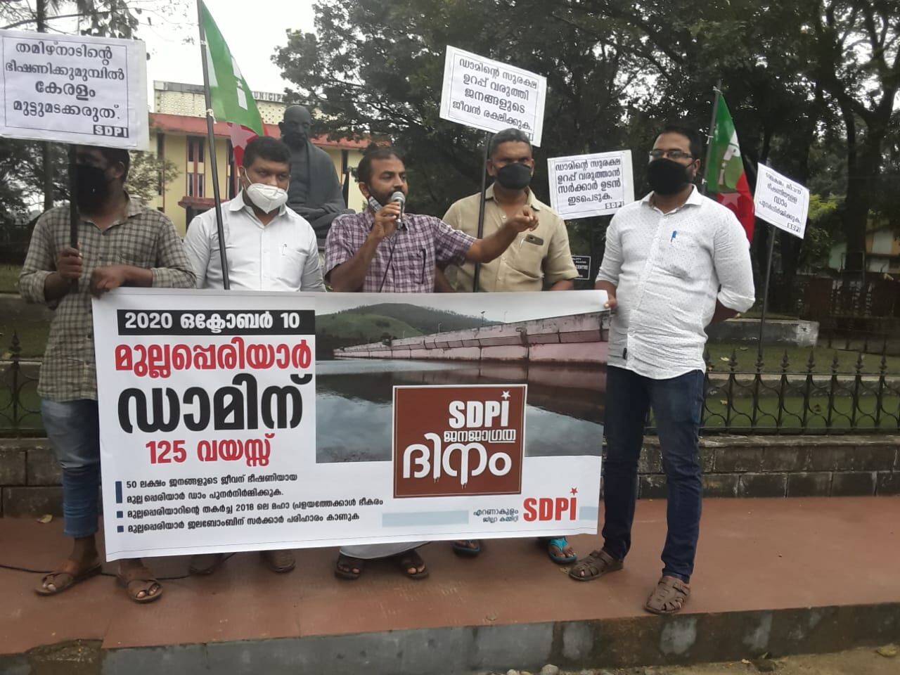 കൊച്ചി: മധ്യകേരളത്തിലെ അമ്പത് ലക്ഷം ജനങ്ങളുടെ ജീവന് ഭീഷണിയായ മുല്ലപ്പെരിയാർ ഡാം പുനർനിർമിക്കണമെന്നാവശ്യപ്പെട്ട് കൊണ്ട് എസ്ഡിപിഐ എറണാകുളം ജില്ലയിൽ ജനജാഗ്രതാ ദിനമായി ആചരിച്ചു. ജില്ലയുടെ വിവിധ സ്ഥലങ്ങളിൽ കൊവിഡ് പ്രോട്ടോക്കോൾ പാലിച്ച് നടന്ന പരിപാടികളിൽ സ്ത്രീകളുൾപ്പെടെ നിരവധി പേർ പങ്കെടുത്തു.