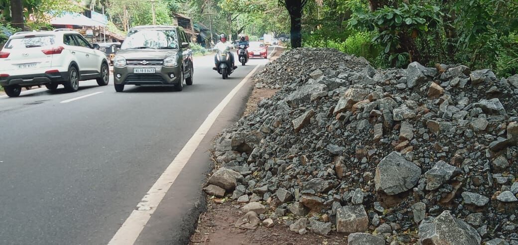 ദേശീയപാതയോരത്ത് കൂട്ടിയിട്ട ക്വാറി വേസ്റ്റ് അപകട ഭീഷണി ഉയർത്തുന്നു