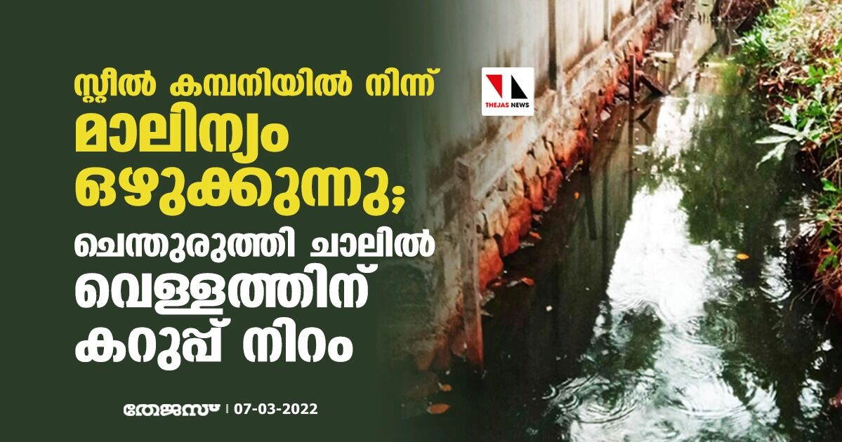 സ്റ്റീൽ കമ്പനിയിൽ നിന്ന് മാലിന്യം ഒഴുക്കുന്നു; ചെന്തുരുത്തി ചാലിൽ വെള്ളത്തിന് കറുപ്പ് നിറം