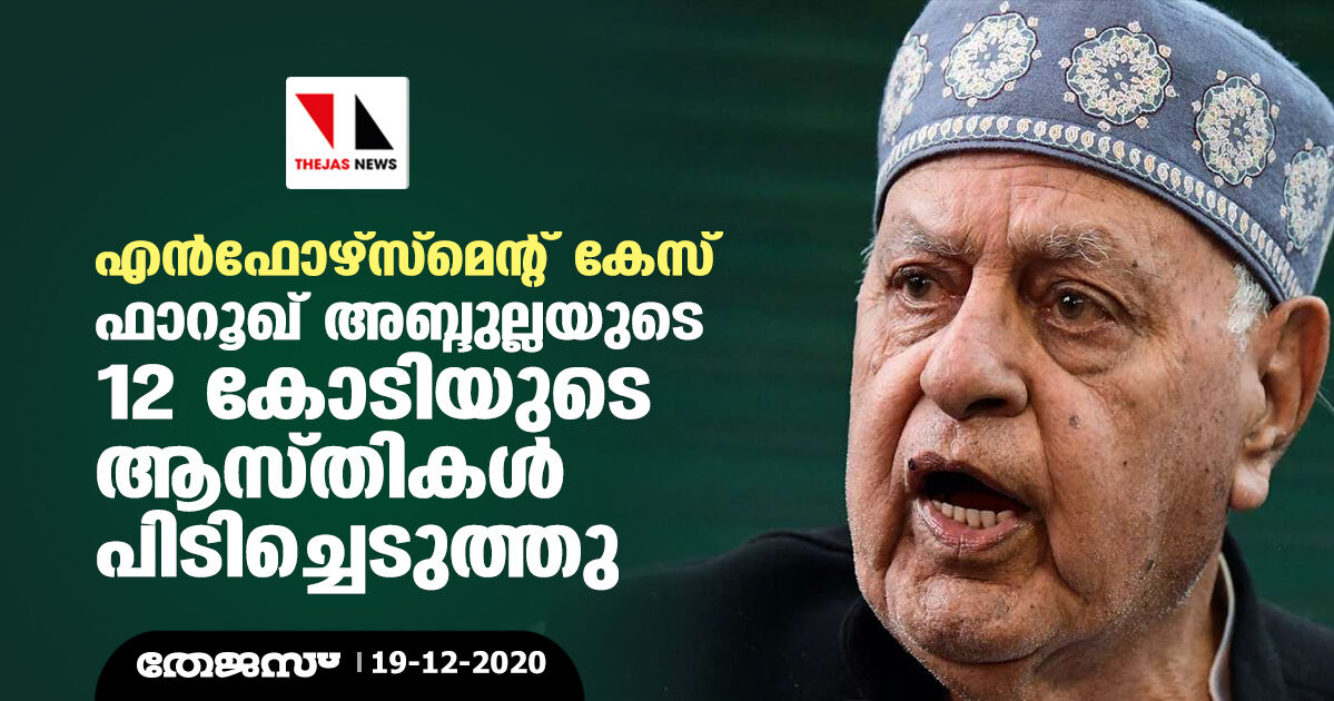 എന്ഫോഴ്സ്മെന്റ് കേസ്: ഫാറൂഖ് അബ്ദുല്ലയുടെ 12 കോടിയുടെ ആസ്തികള് പിടിച്ചെടുത്തു