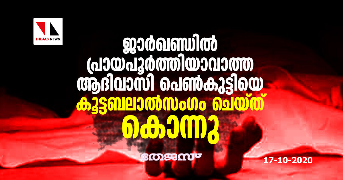 ജാര്ഖണ്ഡില് പ്രായപൂര്ത്തിയാവാത്ത ആദിവാസി പെണ്കുട്ടിയെ കൂട്ടബലാല്സംഗം ചെയ്ത് കൊന്നു