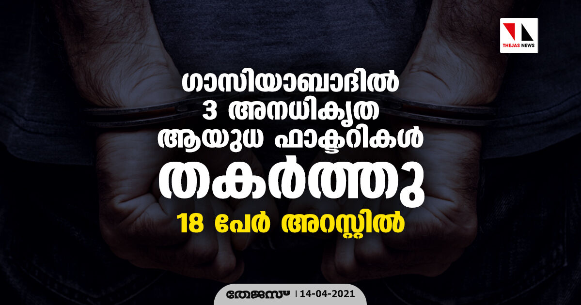 ഗാസിയാബാദിൽ 3 അനധികൃത ആയുധ ഫാക്ടറികൾ തകർത്തു, 18 പേർ അറസ്റ്റിൽ