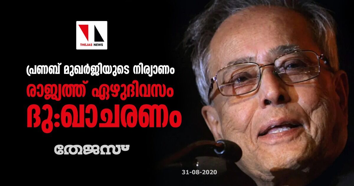 പ്രണബ് മുഖര്ജിയുടെ നിര്യാണം; രാജ്യത്ത് ഏഴുദിവസം ദു:ഖാചരണം