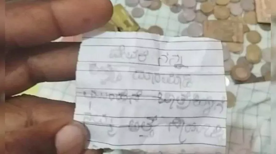 ഹുളികന്ദേശ്വര ക്ഷേത്രം അധികാരികള് കാണിക്ക എണ്ണിത്തിട്ടപ്പോടുത്തുമ്പോഴാണ് 100 രൂപയ്ക്കൊപ്പം ചേര്ത്തുവച്ച കുറിപ്പ് ശ്രദ്ധിക്കുന്നത്. 'എന്റെ പൊന്നു ഭഗവാനേ എന്റെ വേദനകള് ഇല്ലാതാക്കണമേ...അടുത്ത ഉല്സവത്തിനു മുന്പ് എന്റെ അമ്മായിയമ്മയെ അങ്ങ് മുകളിലേക്കെടുക്കേണമേ...'എന്നാണ് കുറിപ്പിലുണ്ടായിരുന്നത്.