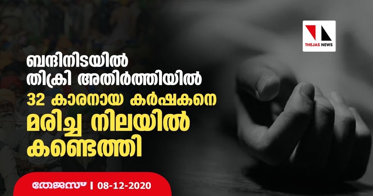 ന്യൂഡൽഹി: ഹരിയാനയിലെ സോണിപത്തിൽ നിന്നുള്ള 32 കാരനായ കർഷകനെ തിക്രി അതിർത്തിയിൽ ചൊവ്വാഴ്ച മരിച്ച നിലയിൽ കണ്ടെത്തി. ഡൽഹിയിലും പരിസരത്തുമുള്ള കർഷകരുടെ പ്രതിഷേധം പതിമൂന്നാം ദിവസമായ ഇന്ന് ഭാരത് ബന്ദ് ആചരിക്കുന്നതിനിടെയാണ് സംഭവം.