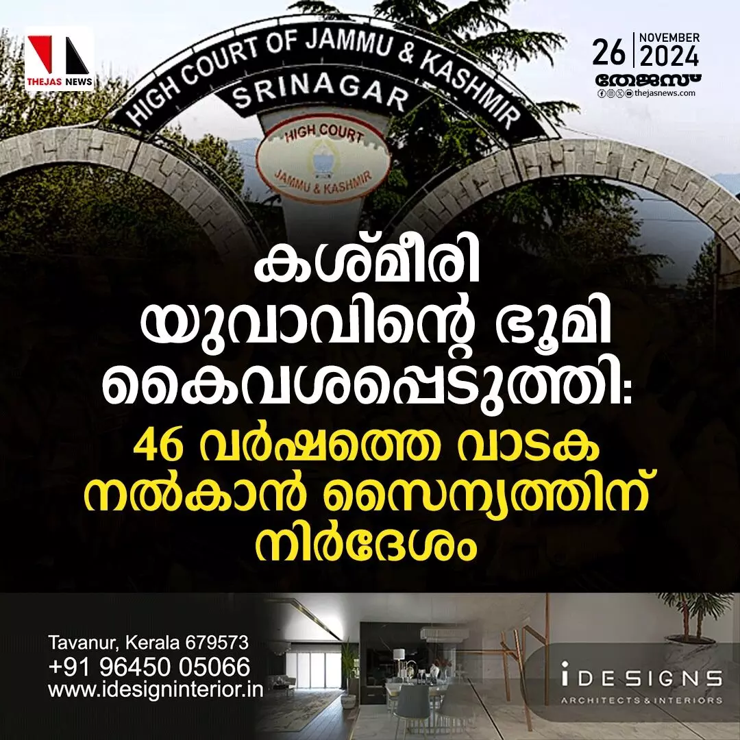 കശ്മീരി യുവാവിന്റെ ഭൂമി കൈവശപ്പെടുത്തി; 46 വര്ഷത്തെ വാടക നല്കാന് സൈന്യത്തിന് നിര്ദ്ദേശം