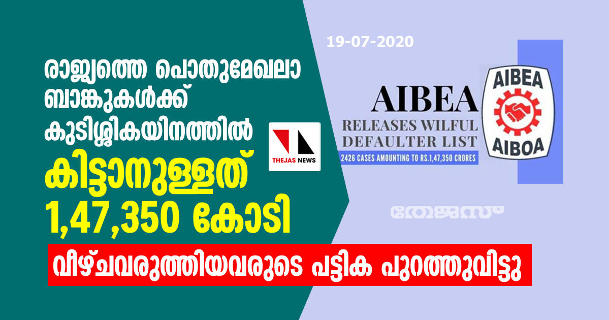 രാജ്യത്തെ പൊതുമേഖലാ ബാങ്കുകള്ക്ക് കുടിശ്ശികയിനത്തില് കിട്ടാനുള്ളത് 1,47,350 കോടി; വീഴ്ചവരുത്തിയവരുടെ പട്ടിക പുറത്തുവിട്ടു