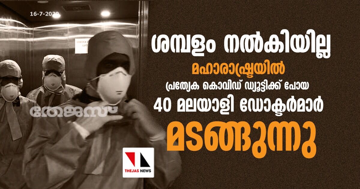 ശമ്പളം നല്കിയില്ല; മഹാരാഷ്ട്രയില് പ്രത്യേക കൊവിഡ് ഡ്യൂട്ടിക്ക് പോയ 40 മലയാളി ഡോക്ടര്മാര് മടങ്ങുന്നു
