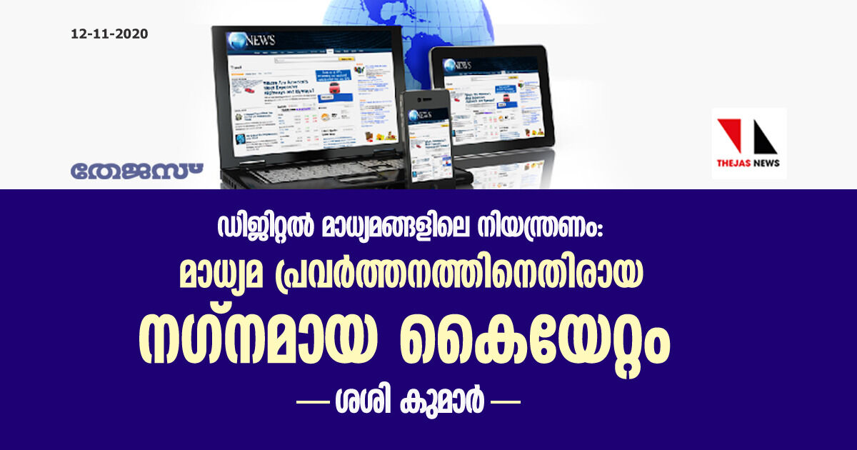 ഡിജിറ്റല് മാധ്യമങ്ങളിലെ നിയന്ത്രണം മാധ്യമ പ്രവര്ത്തനത്തിനെതിരായ നഗ്നമായ കയ്യേറ്റം: ശശി കുമാര്
