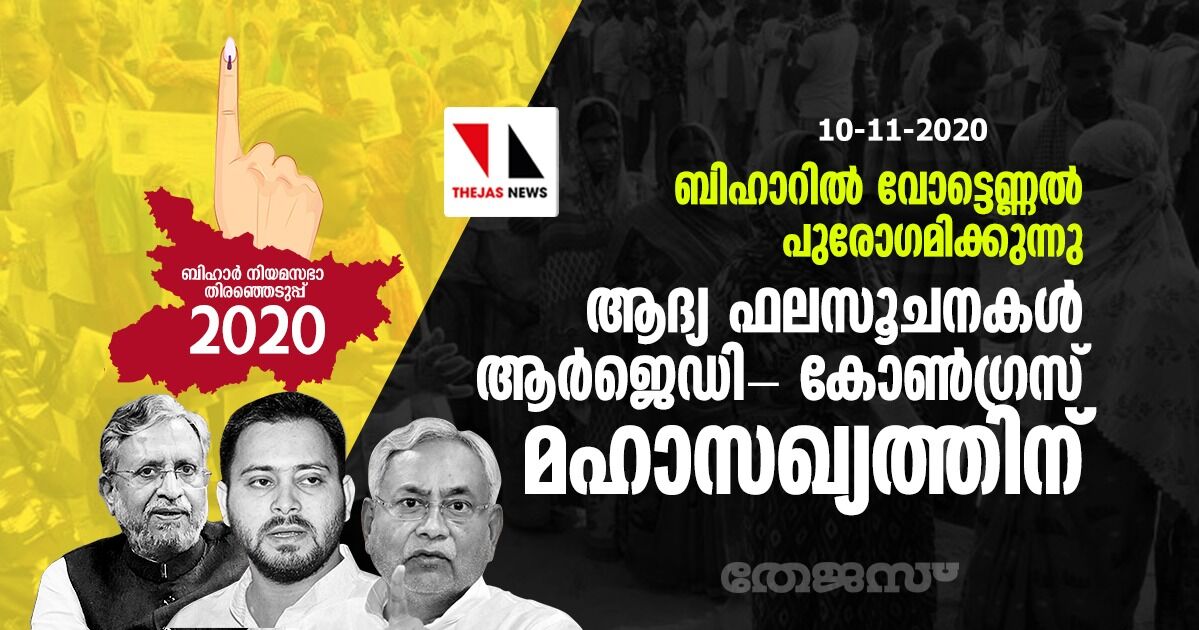 ബിഹാറില് വോട്ടെണ്ണല് പുരോഗമിക്കുന്നു; ആദ്യ ഫലസൂചനകള് ആര്ജെഡി- കോണ്ഗ്രസ് മഹാസഖ്യത്തിന്