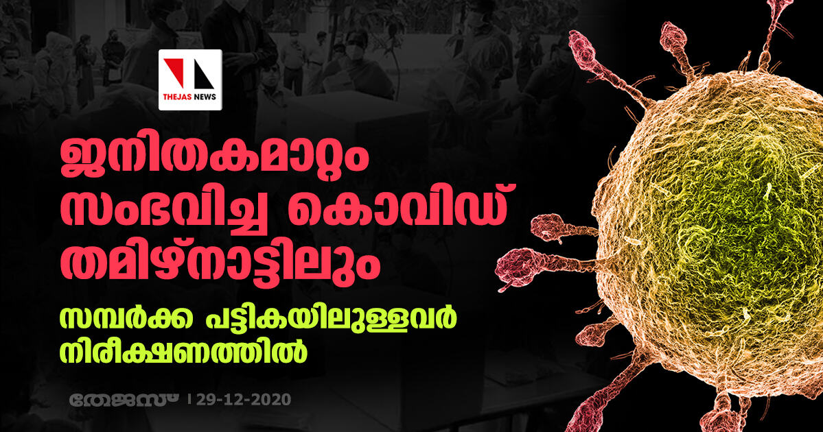 ജനിതകമാറ്റം സംഭവിച്ച കൊവിഡ് തമിഴ്നാട്ടിലും; സമ്പര്ക്ക പട്ടികയിലുള്ളവര് നിരീക്ഷണത്തില്
