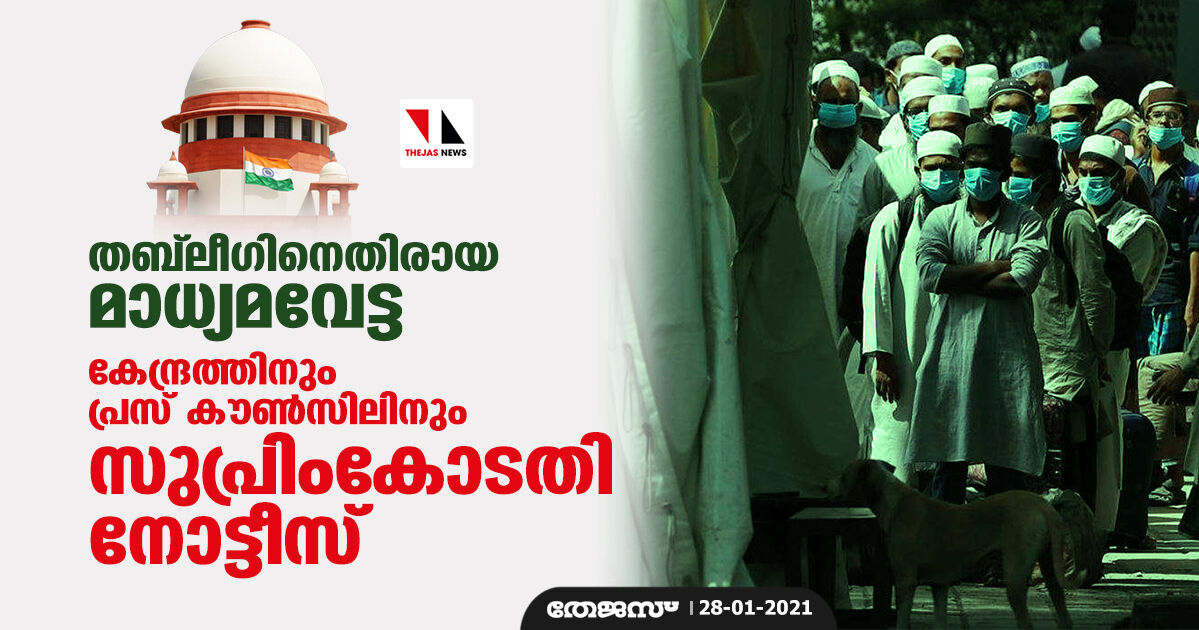 തബ്ലീഗിനെതിരായ മാധ്യമവേട്ട; കേന്ദ്രസര്ക്കാരിനും പ്രസ് കൗണ്സിലിനും സുപ്രിംകോടതി നോട്ടീസ്