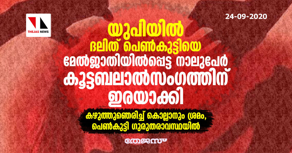 യുപിയില് ദലിത് പെണ്കുട്ടിയെ മേല്ജാതിയില്പ്പെട്ട നാലുപേര് കൂട്ടബലാല്സംഗത്തിനിരയാക്കി