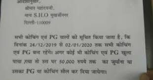 ഡല്ഹിയിലെ കോച്ചിങ് കേന്ദ്രങ്ങള് അടച്ചുപൂട്ടാന് പോലിസ് നിര്ദ്ദേശം.