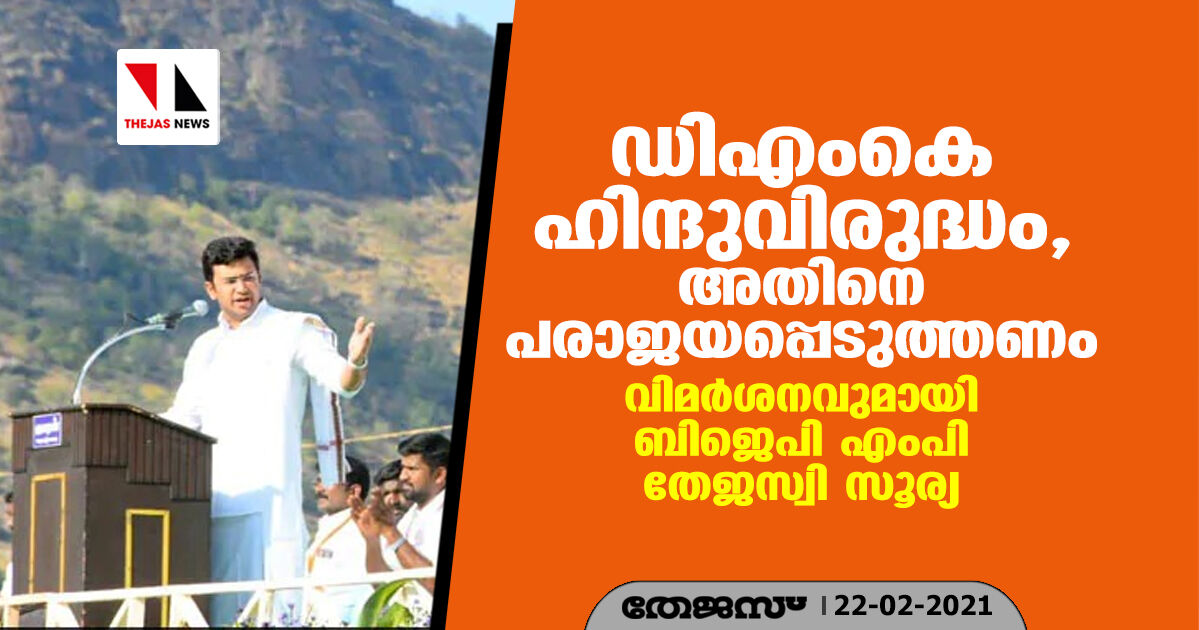 ഡിഎംകെ ഹിന്ദുവിരുദ്ധം, അതിനെ പരാജയപ്പെടുത്തണം; വിമര്ശനവുമായി ബിജെപി എംപി തേജസ്വി സൂര്യ