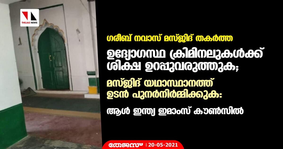 ഗരീബ് നവാസ് മസ്ജിദ് തകർത്ത ഉദ്യോഗസ്ഥ ക്രിമിനലുകൾക്ക് ശിക്ഷ ഉറപ്പുവരുത്തുക; മസ്ജിദ് യഥാസ്ഥാനത്ത് ഉടൻ പുനർനിർമ്മിക്കുക: ആൾ ഇന്ത്യ ഇമാംസ് കൗൺസിൽ