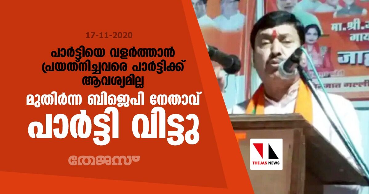 പാര്ട്ടിയെ വളര്ത്താന് പ്രയത്നിച്ചവരെ പാര്ട്ടിക്ക് ആവശ്യമില്ല; മുതിര്ന്ന ബിജെപി നേതാവ് പാർട്ടി വിട്ടു