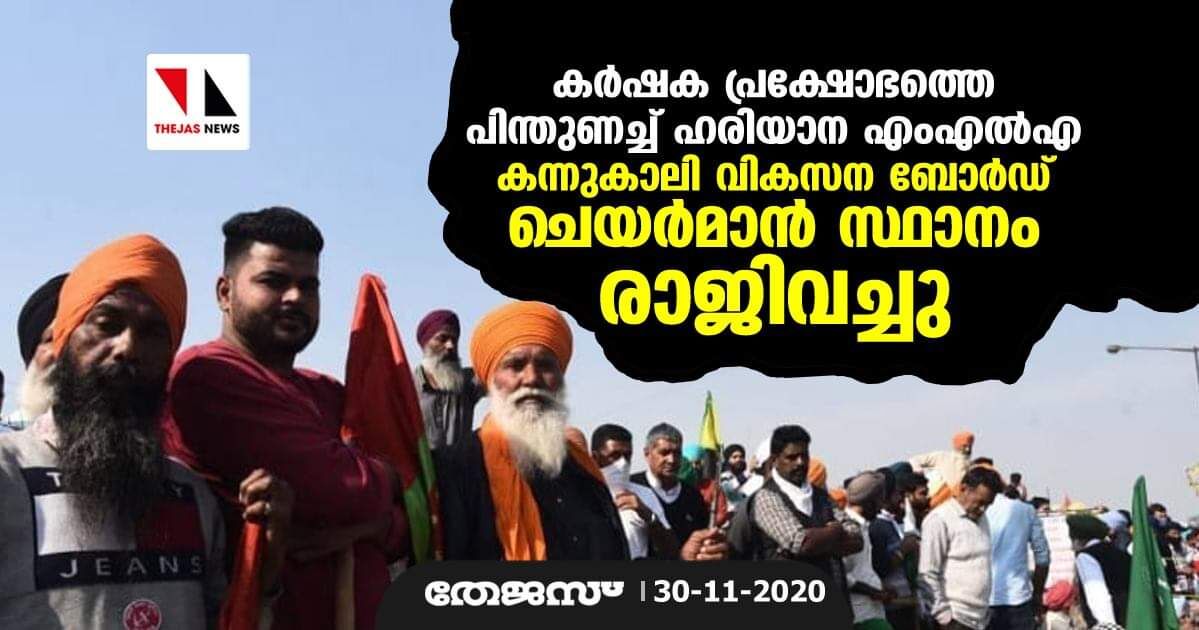 കർഷക പ്രക്ഷോഭത്തെ പിന്തുണച്ച് ഹരിയാന എംഎൽഎ കന്നുകാലി വികസന ബോർഡ് ചെയർമാൻ സ്ഥാനം രാജിവച്ചു