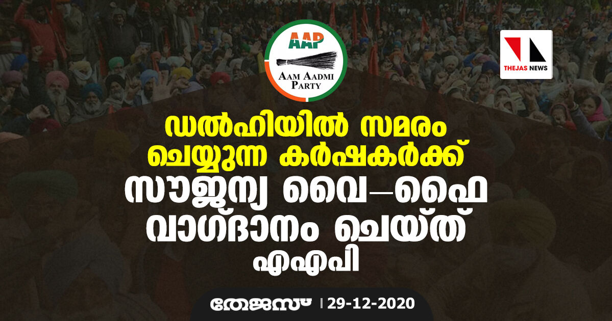 ഡല്ഹിയില് സമരം ചെയ്യുന്ന കര്ഷകര്ക്ക് സൗജന്യ വൈ-ഫൈ വാഗ്ദാനം ചെയ്ത് എഎപി